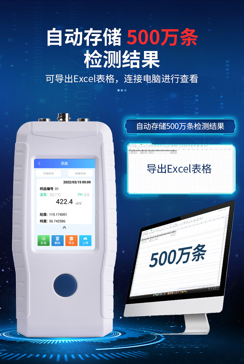 ●檢測結(jié)果存儲容量500萬條,支持數(shù)據(jù)存儲、查閱。